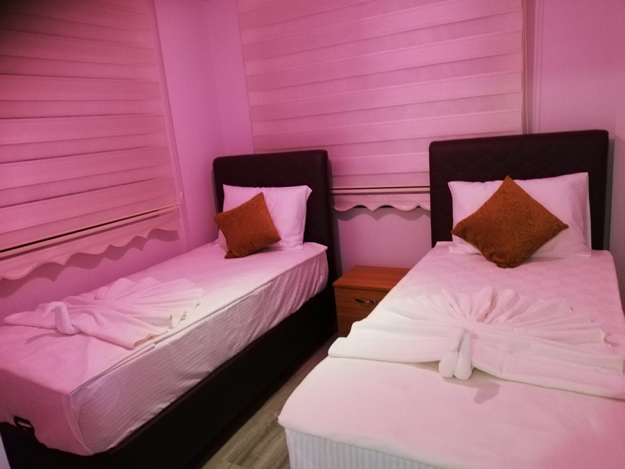 غرفة النوم الأولى: 2 سرير فردي + تكييف + ترابيزة جانبية + خزانة ملابس + حمام مشترك،