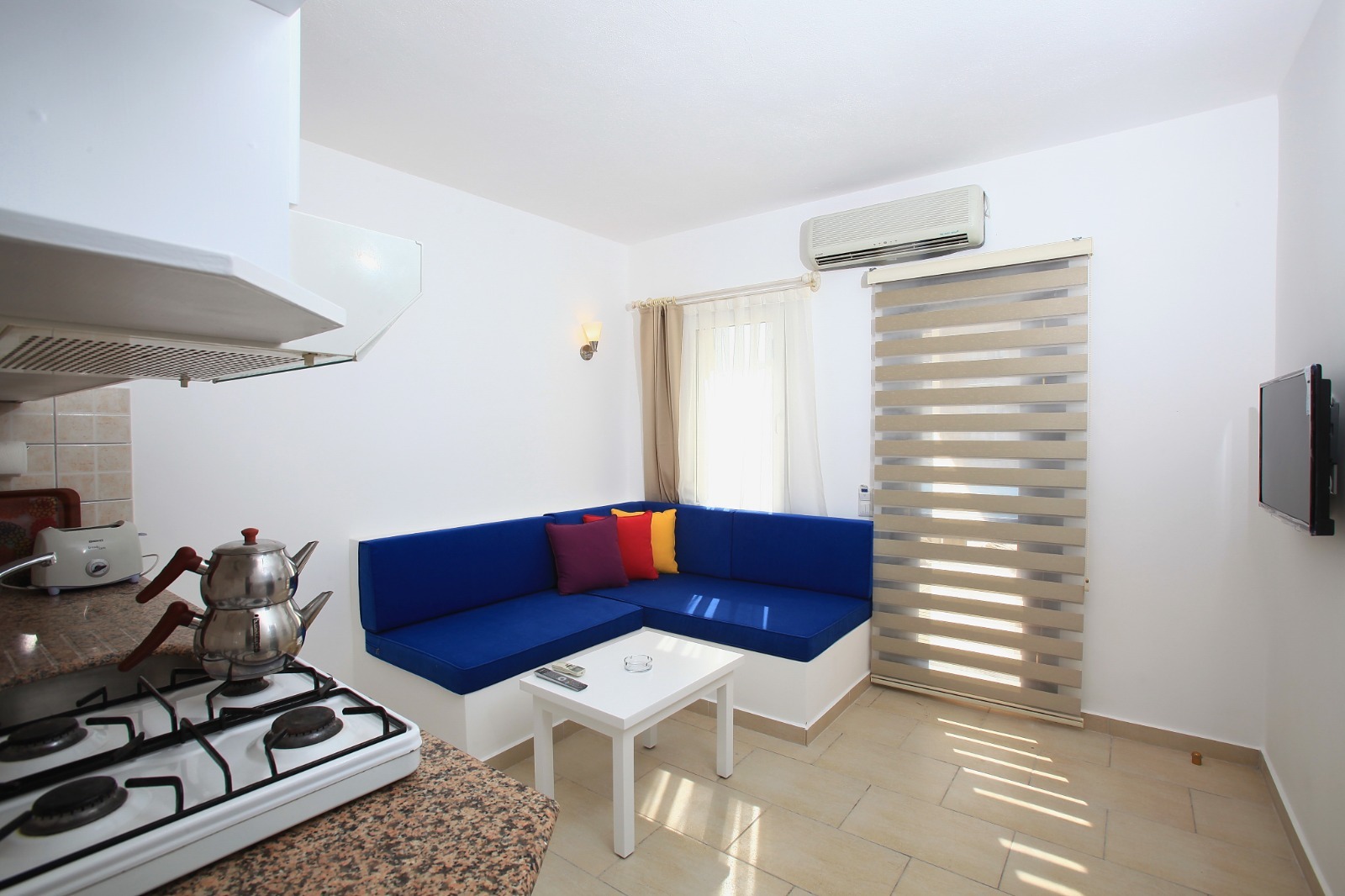 Das Bitez Ferienhäuser-Konzept Wohnung MB 146 befindet sich in Bodrum Bitez in einer zentralen, aber dennoch ruhigen Lage und bietet ein modernes Design sowie großzügige Wohnbereiche für einen komfortablen Aufenthalt. Mit seiner 2+1 Aufteilung ist die Wohnung ideal für Familien und Freundesgruppen geeignet. Der gemeinschaftliche Swimmingpool sorgt für zusätzlichen Urlaubskomfort, während der Strand fußläufig erreichbar ist und somit ein einfaches Erlebnis von Meer, Sand und Sonne ermöglicht. Wohnung MB 146 ist mit stilvollen und funktionalen Möbeln ausgestattet und wurde sorgfältig für einen entspannten Aufenthalt in Bodrum Bitez vorbereitet.