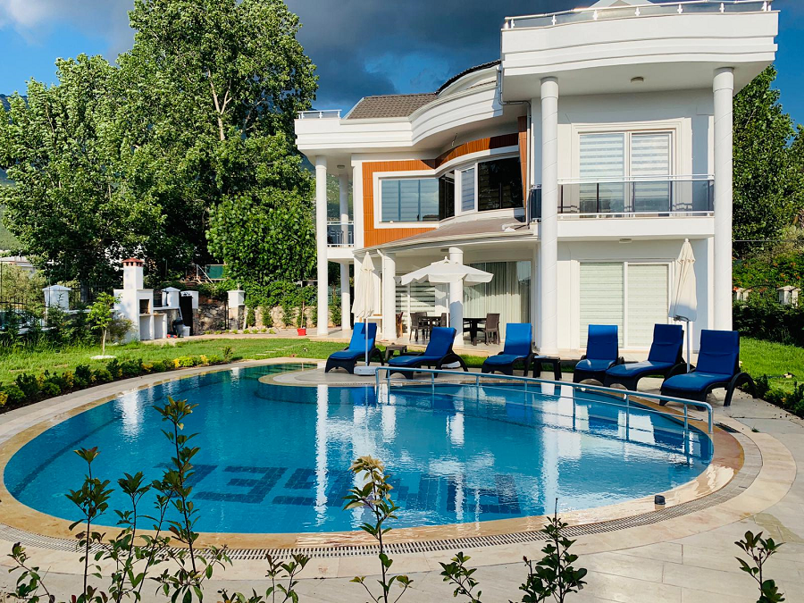 Die Ferienvilla ANGL VLLY in Fethiye - Hisarönü, ist unsere Empfehlung für Ihre Villa-Mietanfragen in Fethiye. Die villa bietet 4 Schlafzimmer, äußerst luxuriöse Möbel, einen privater Pool einen persönlichen Garten und ihre Nähe zum Zentrum von Fethiye, was sie zu einer unvergesslichen Urlaubsvilla-Alternative für Gruppen von 8 Personen, bestehend aus Familien und Freunden, macht. Die Ferienvilla ANGL VLLY ist in einem äußerst modernen Stil gestaltet und mit äußerst luxuriösen Möbeln ausgestattet und bietet allen Komfort, den Sie in einer Ferienvilla benötigen.
