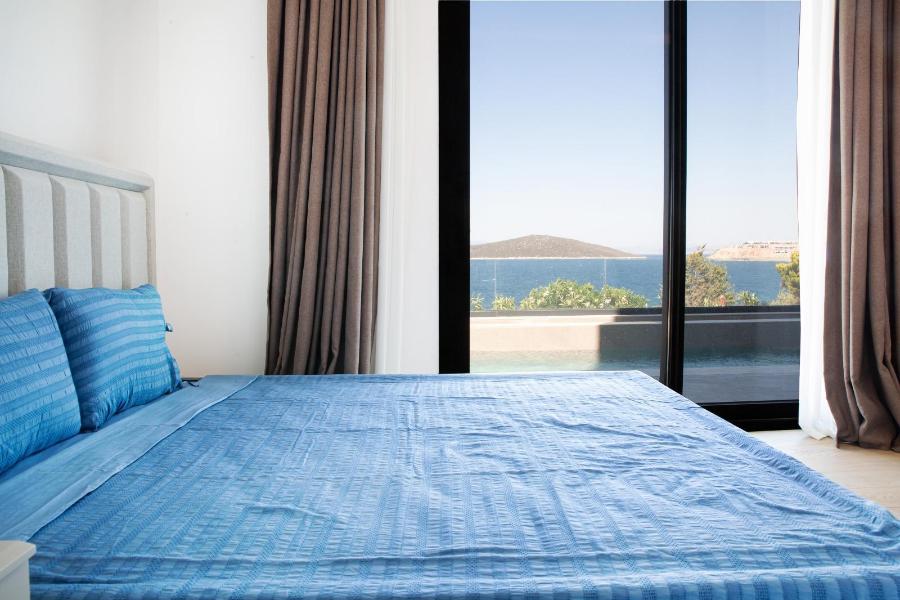 Erleben Sie exklusive Villenvermietung in Bodrum, Gundoan mit Villa BV 3409. Die Villa bietet 5 großzügige Schlafzimmer, einen privaten Pool und direkten Zugang zum Meer mit eigenem Steg, perfekt für Familien oder Gruppen bis zu 10 Personen. Modernes Design und hochwertige Möbel garantieren maximalen Komfort für einen unvergesslichen Urlaub.