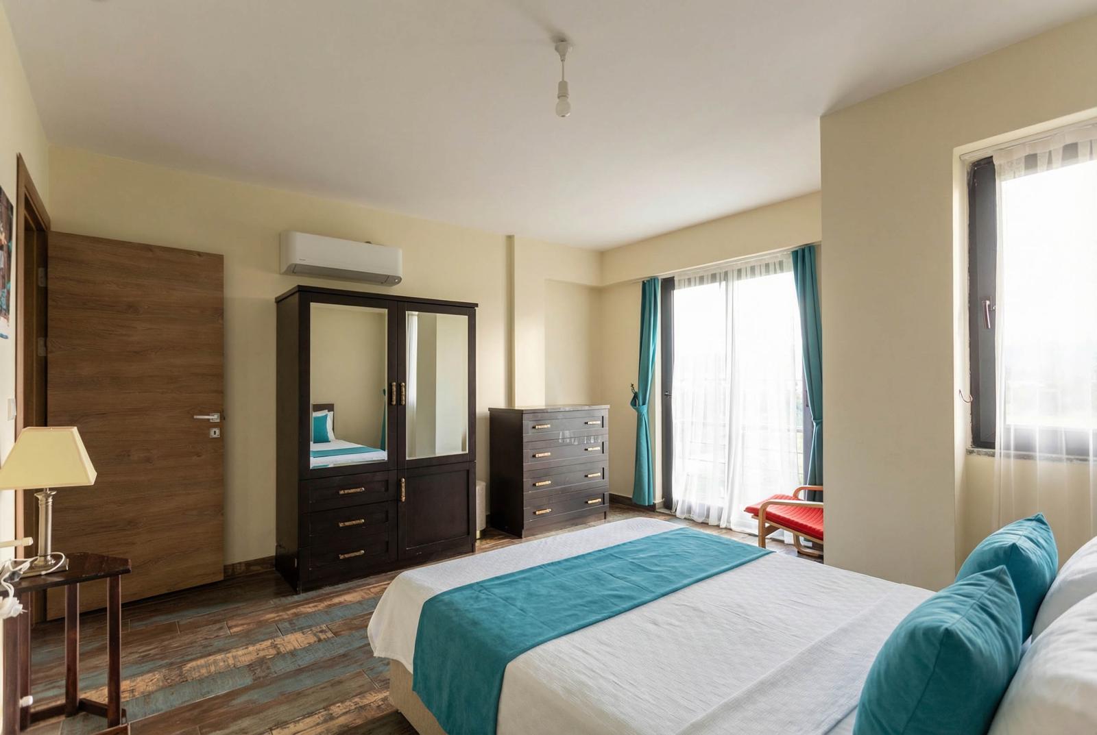 • Bedroom 2: One double bed, air conditioning, wardrobe