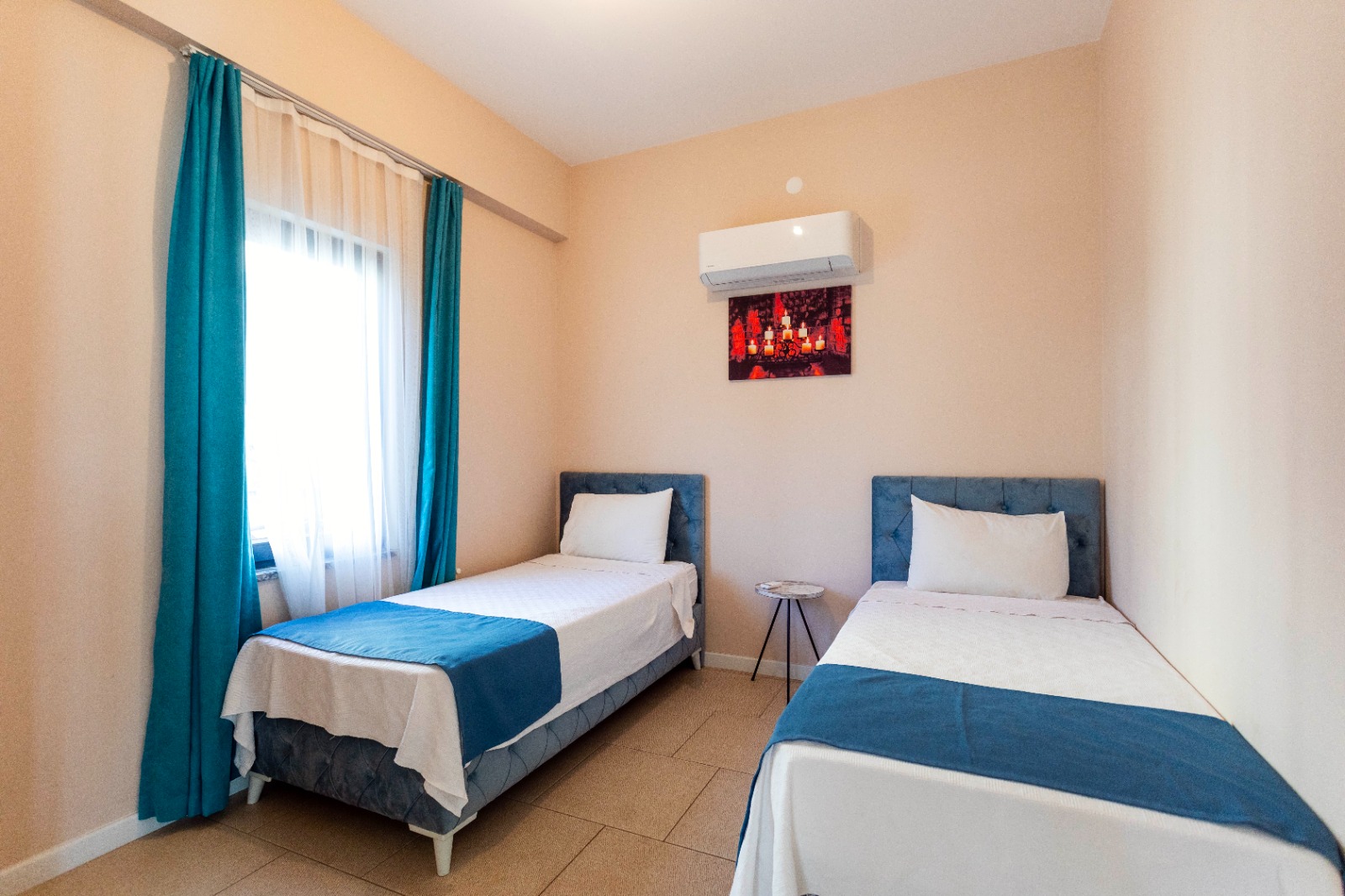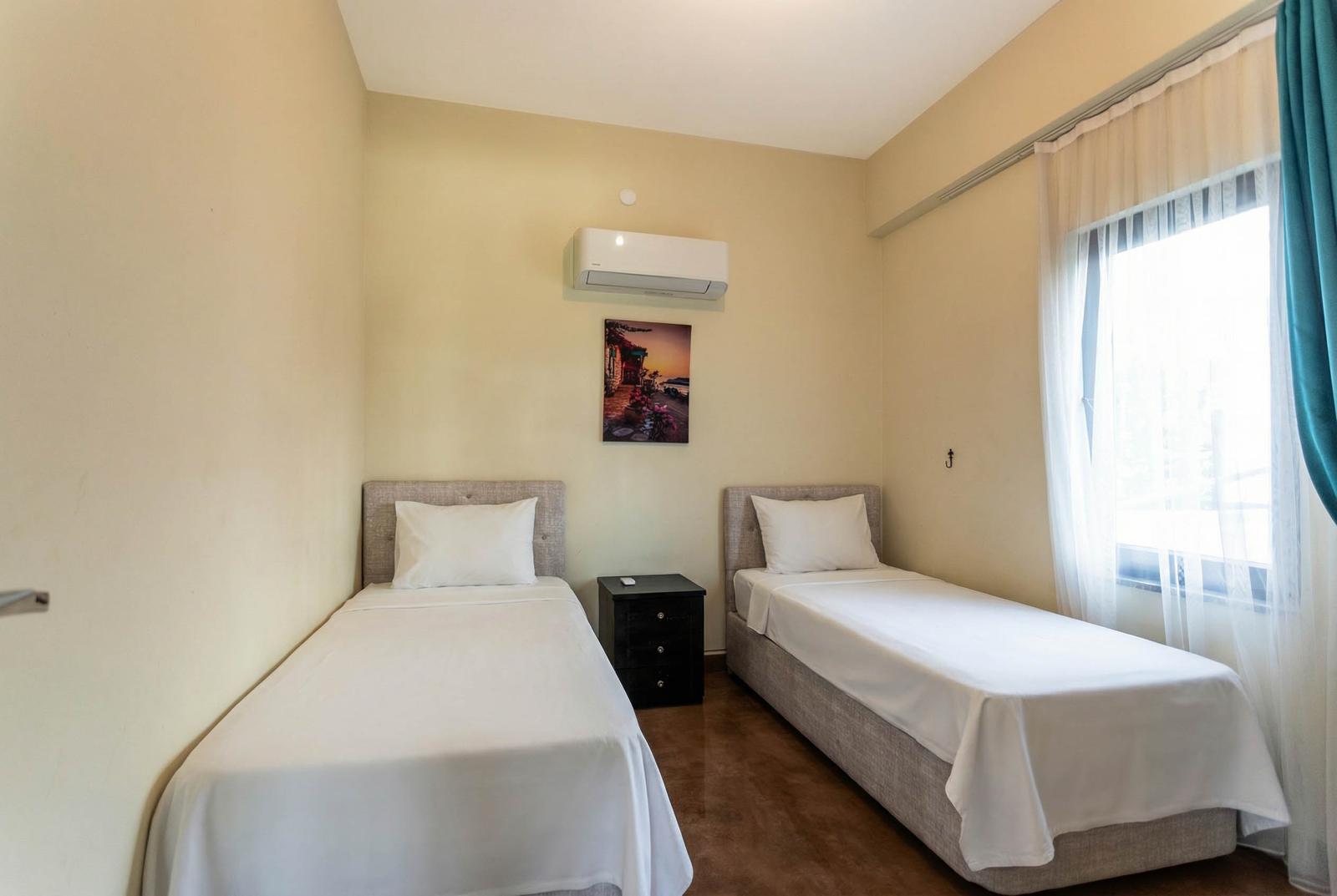 • Bedroom 4: Two single beds, air conditioning, wardrobe