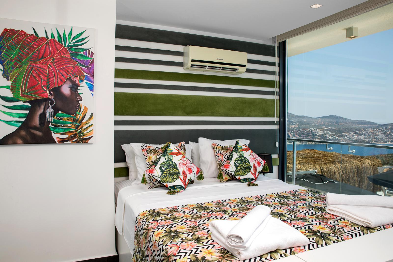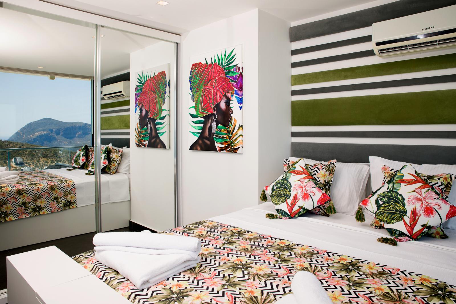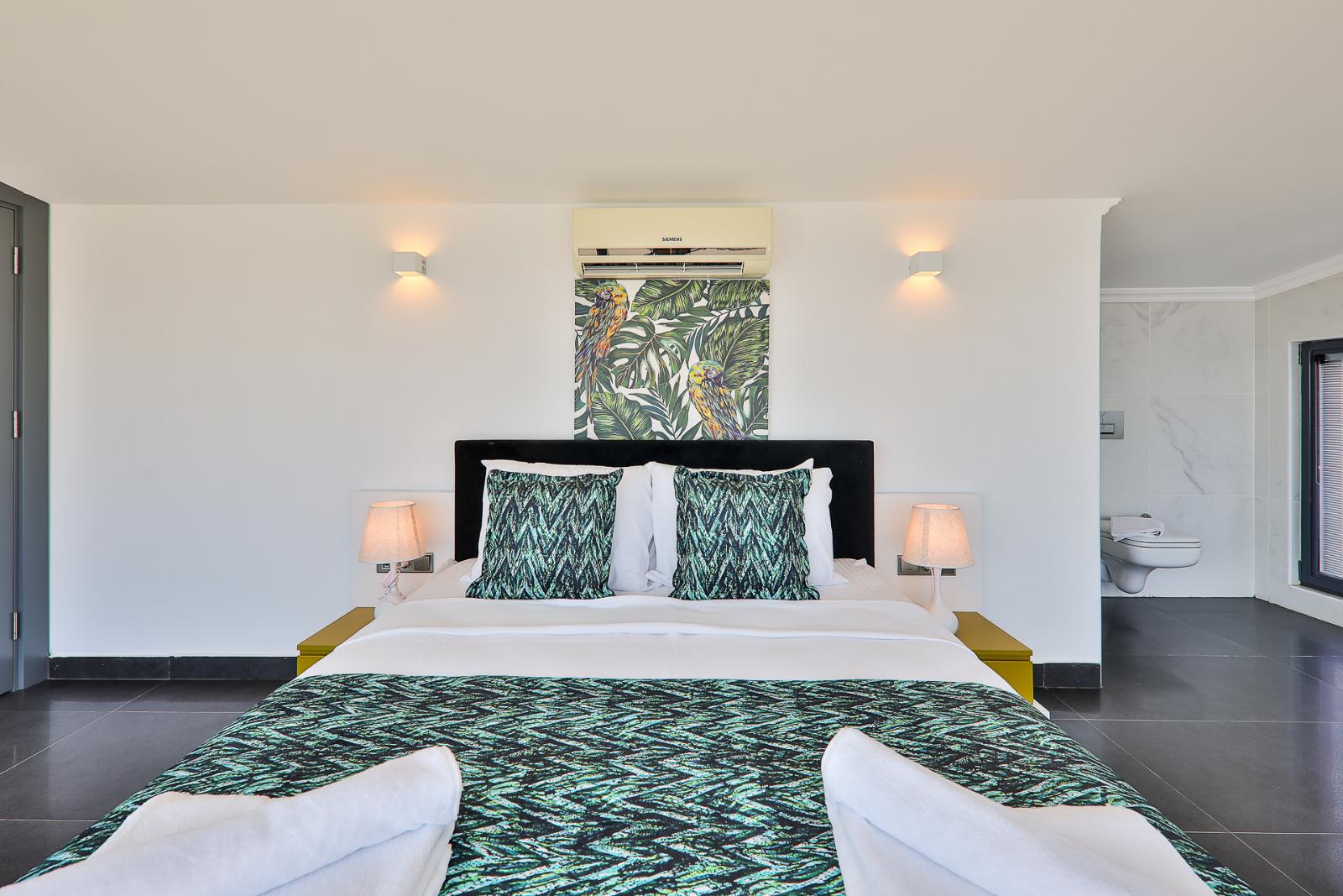 ✦ 2nd Bedroom (1st Floor): Double bed, wardrobe, bedside tables, dressing table, air conditioning, TV, private bathroom, balcony