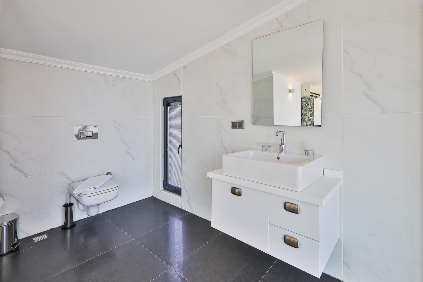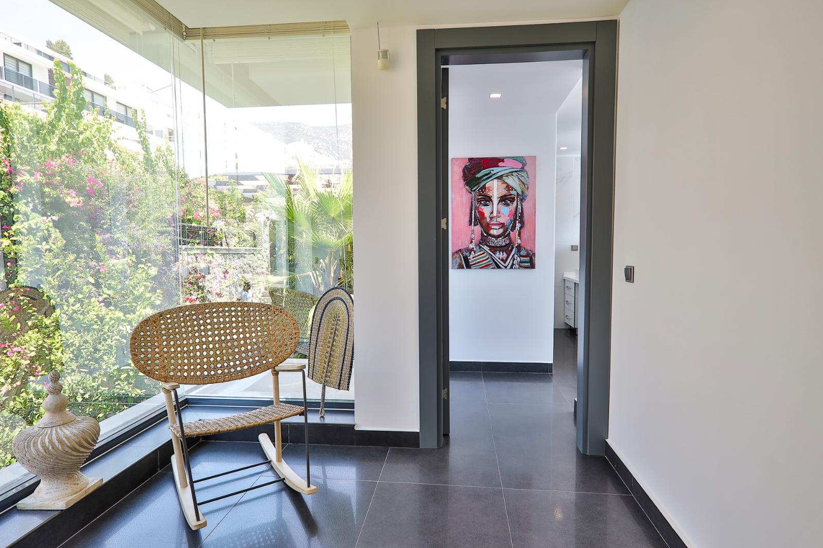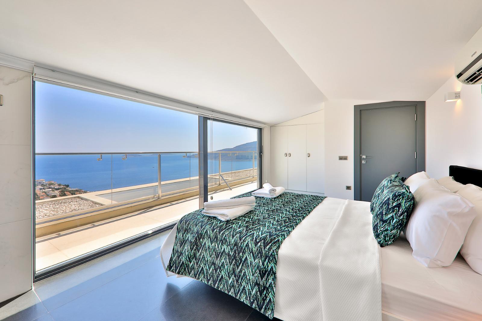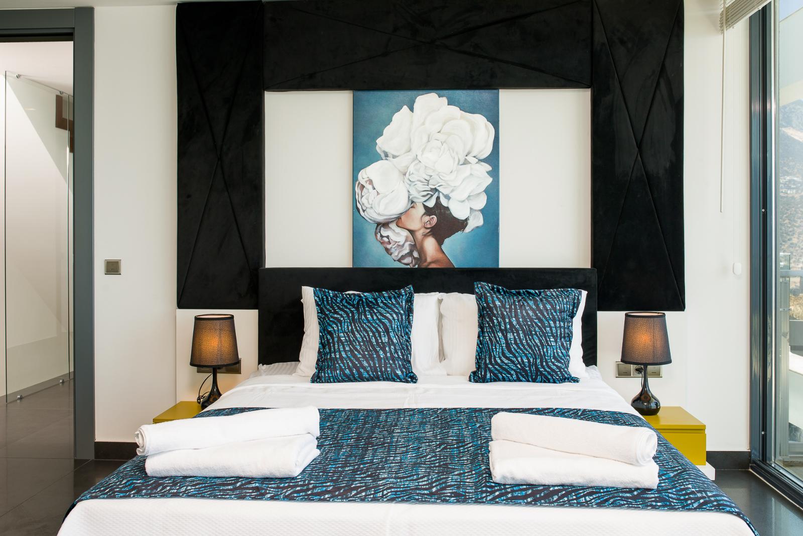 ✦ 2nd Bedroom (1st Floor): Double bed, wardrobe, bedside tables, dressing table, air conditioning, TV, private bathroom, balcony