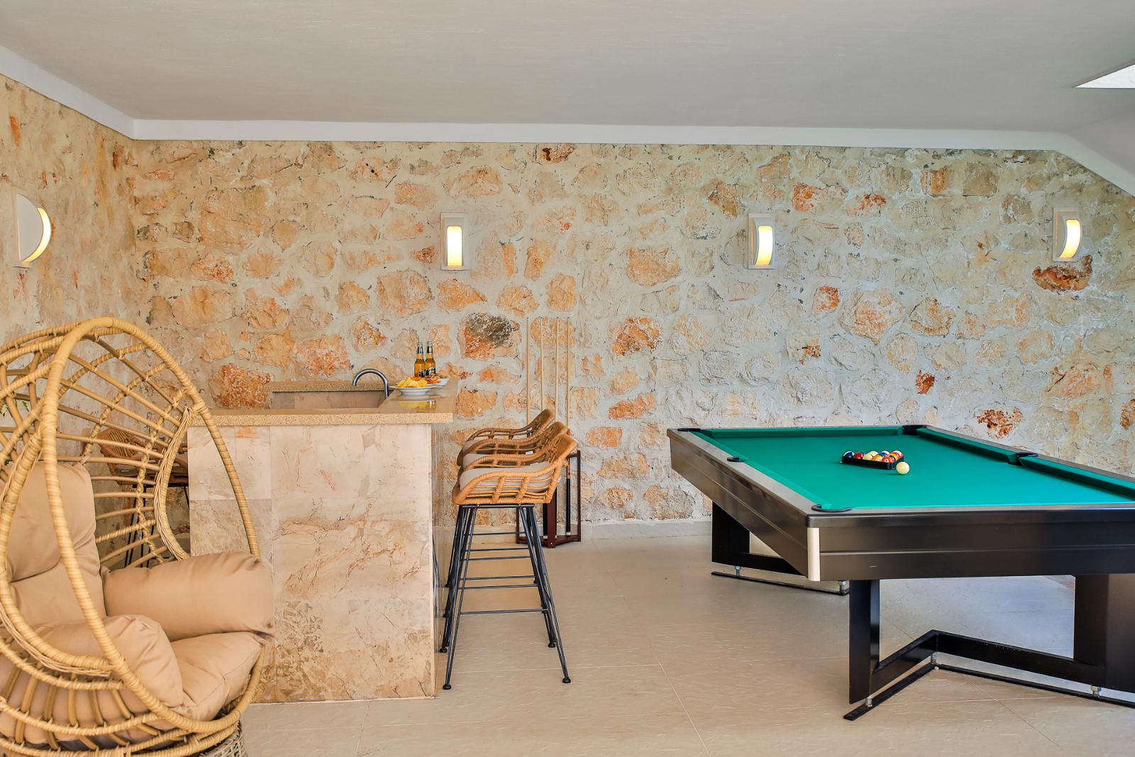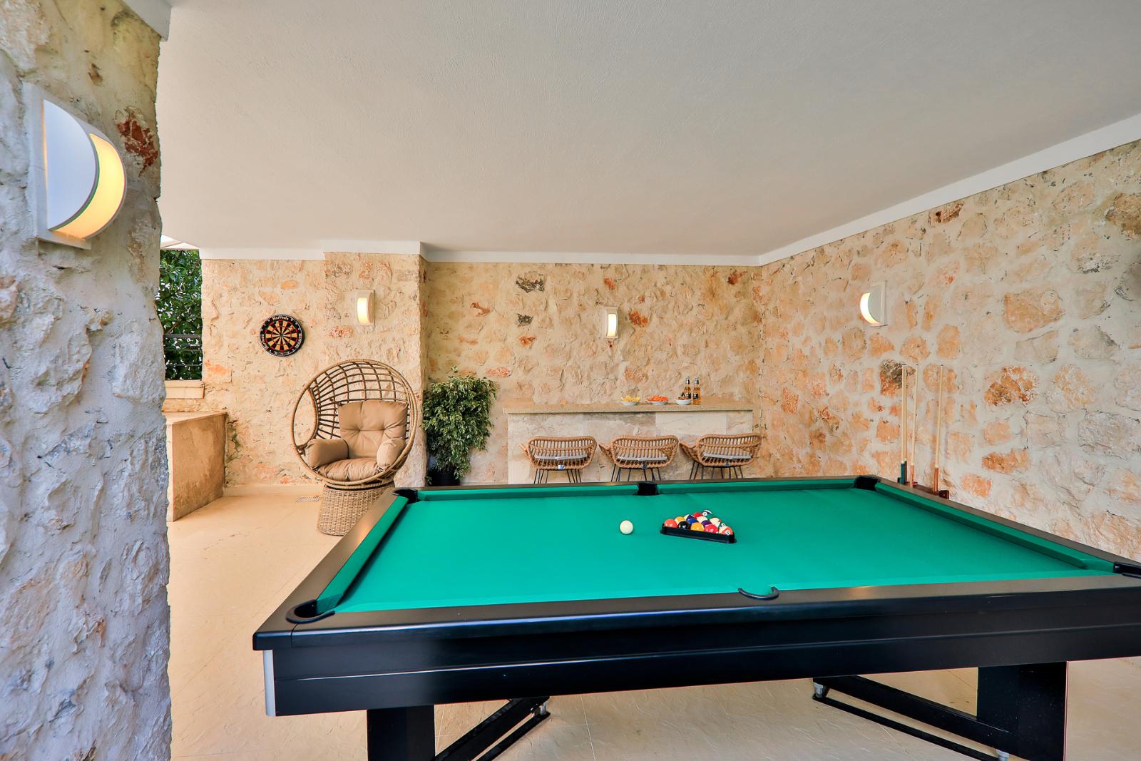 ✦ Billiards Table: A stylish entertainment area for enjoyable moments with family and friends