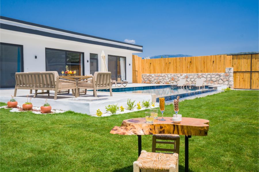 Вилла Аккыз, еще одно место для проживания, которое мы можем порекомендовать вам среди вилл в Калкане, Деревня Безирган. Вилла, расчитана на 4 человек, внутри есть 2 спальни, кухней, Частный бассейн и закрытым личным двориком. Вилла Аккыз, спроектирована с учётом мельчайших деталей и обладает всеми удобствами, которые могут вам понадобиться для самых лучших моментов.