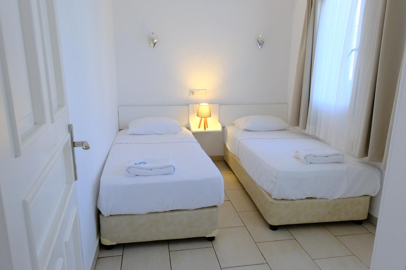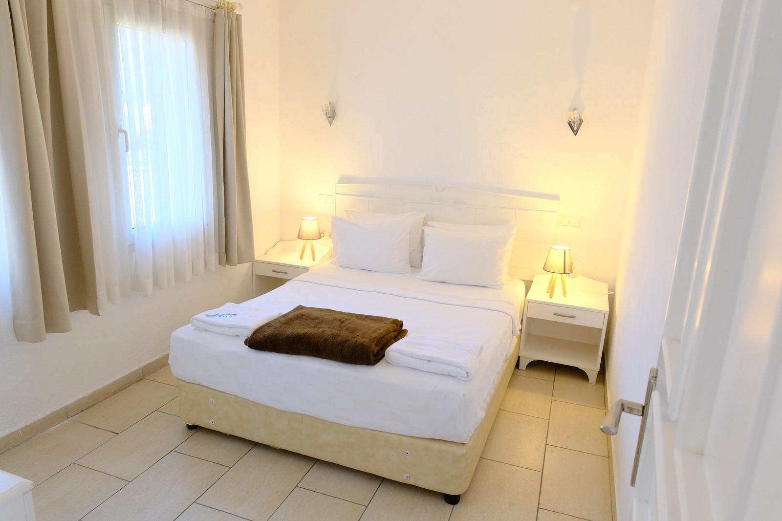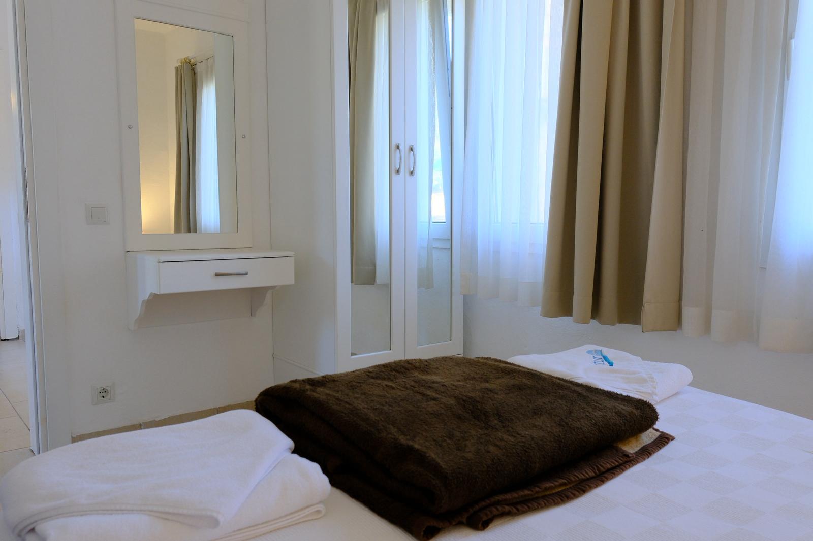 • Yatak Odası: Çift kişilik yatak, klima, geniş saklama dolabı