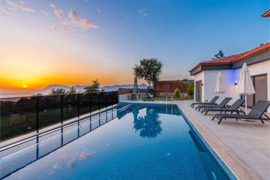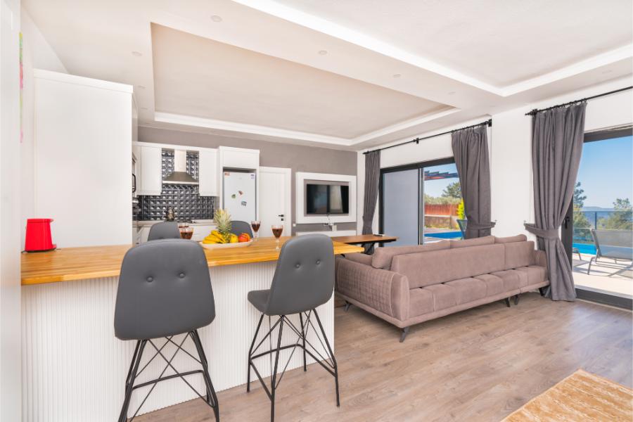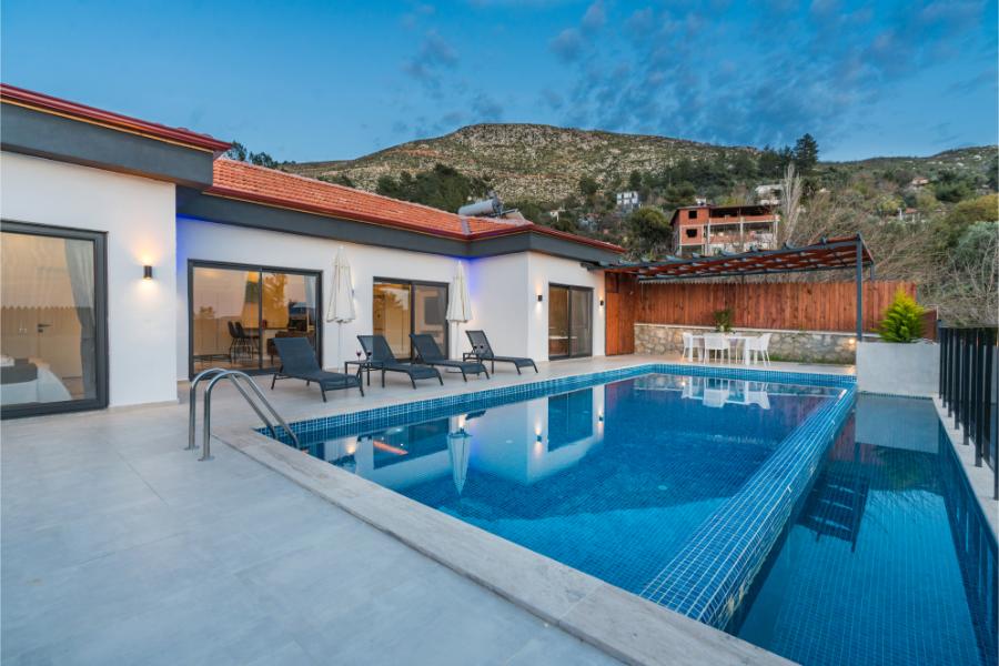 Villa Elly; villa kiralama talepleriniz için size tavsiye edeceğimiz ve Kaş, Üzümlü Köyü'nde bulunan tatil villalarından bir tanesidir. Villa, 2 yatak odası, özel havuzu ve doğa manzaralı konumu ile 4 kişilik tesettürlü aileler ve balayı çiftleri için ideal bir villa kiralama seçeneği olacaktır. Son derece modern olarak dizayn edilip lüks mobilyalar ile döşenmiş olan Villa Elly bir tatil villasında ihtiyaç duyabileceğiniz her türlü konfora sahiptir.