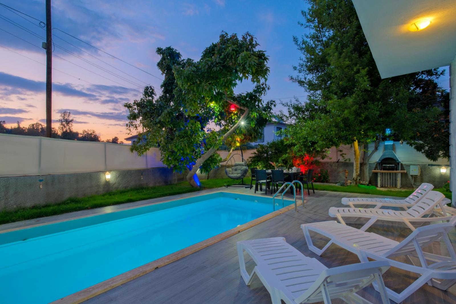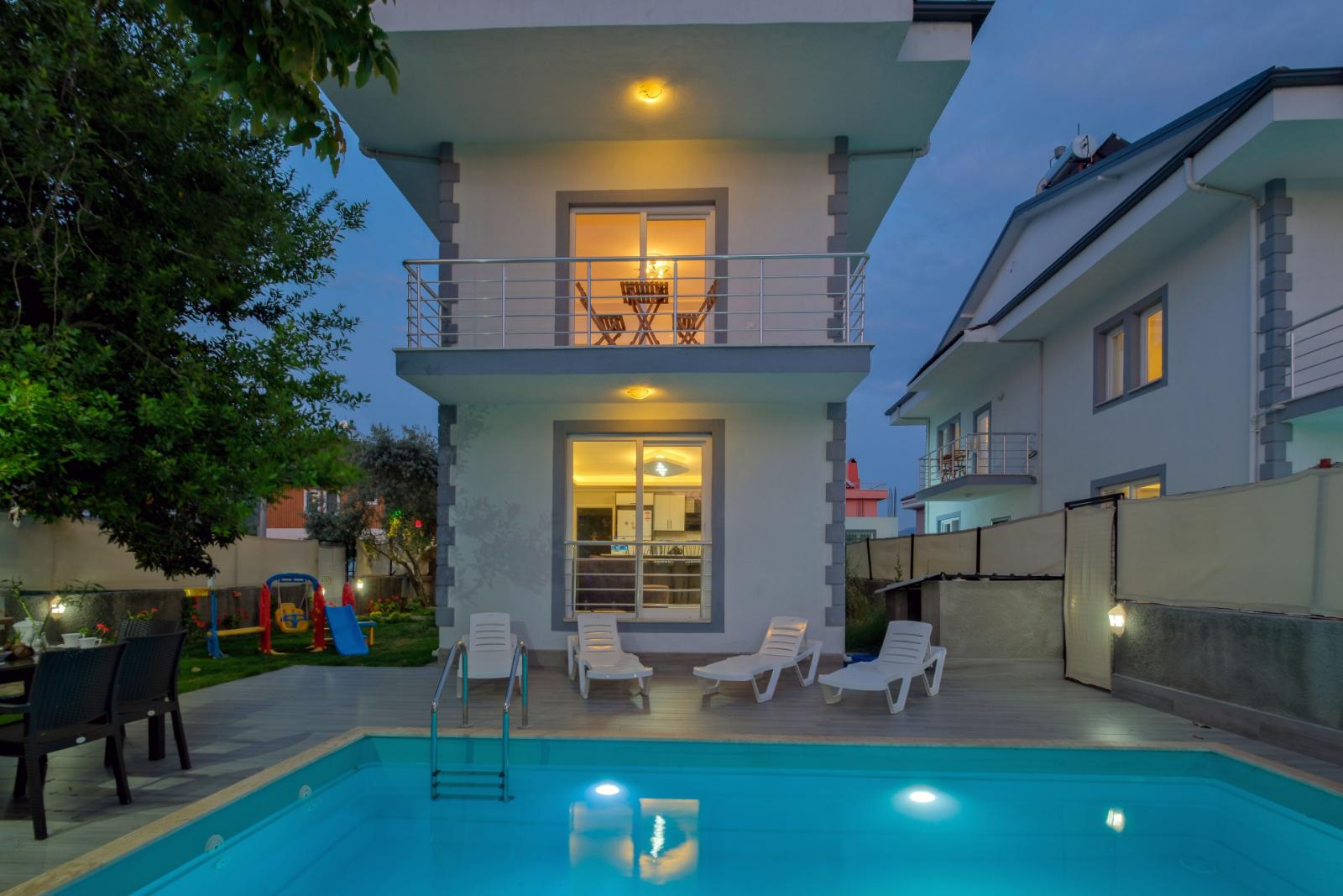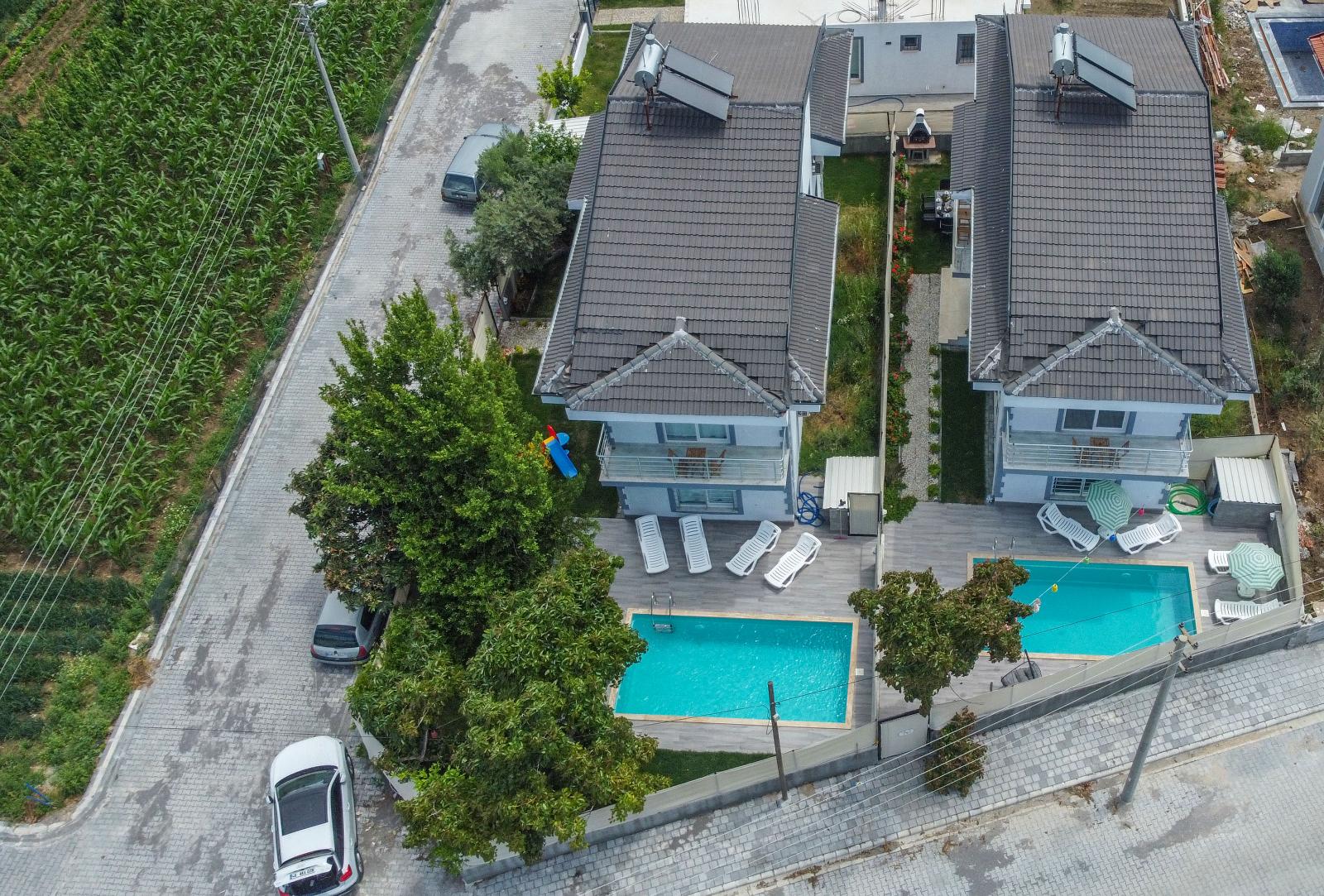 ✔ Havuz Keyfi – Özel havuz, mahremiyet sunarken dışarıdan kısmen görünür; 6 m x 3 m x 1,5 m ölçülerinde.