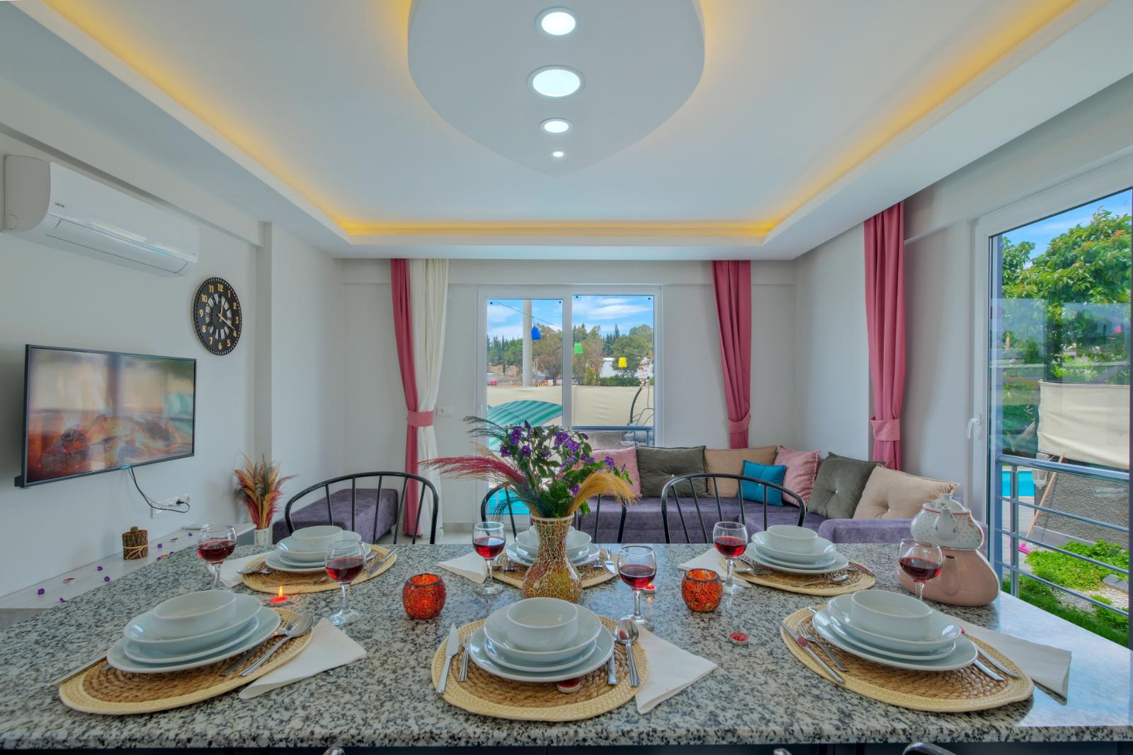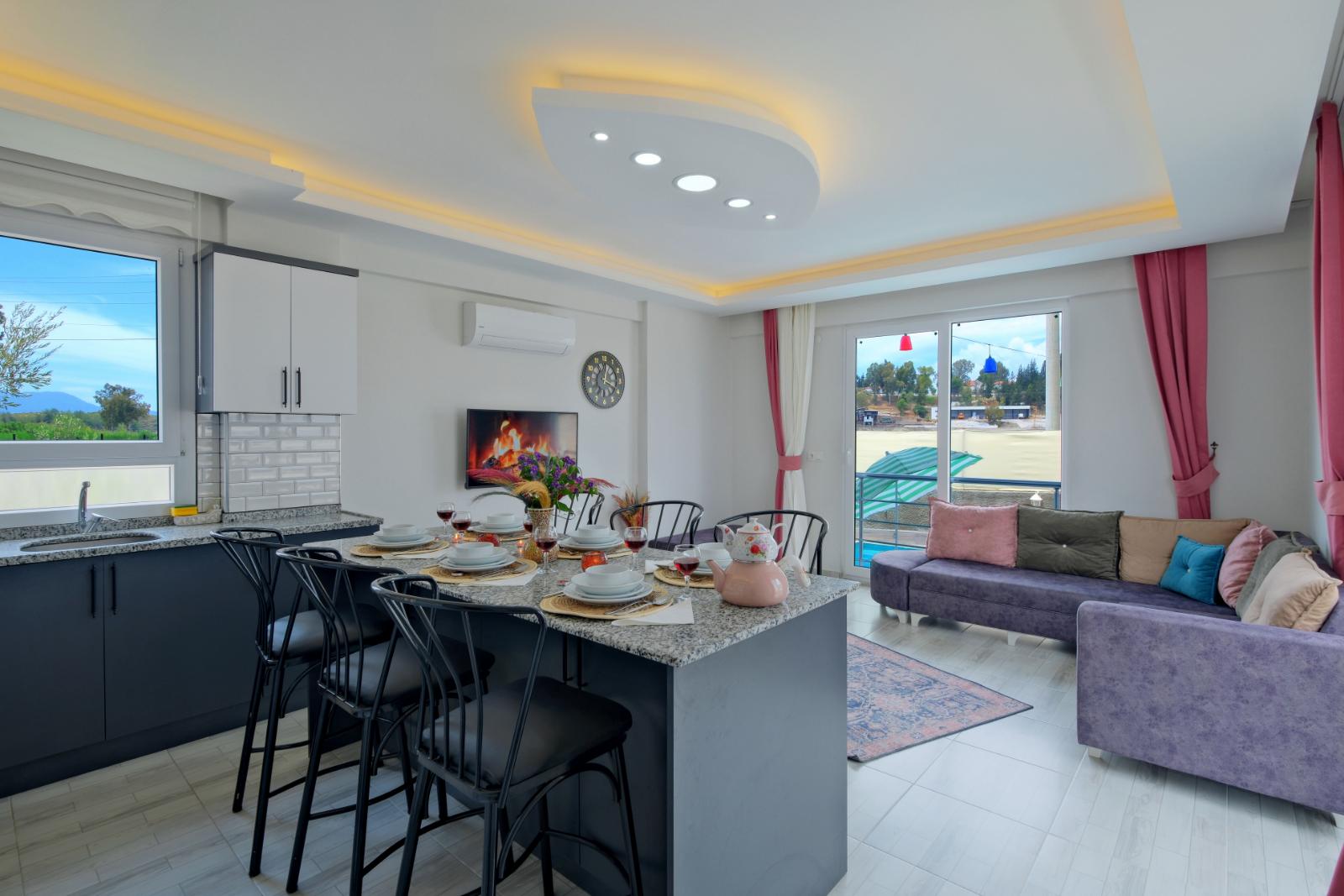 * Resimler yalnızca örnek evi gösterir. Tatil evlerimizdeki mobilya, havlu ve çarşaflar az da olsa değişiklik gösterebilir ancak resimlerde gösterilen kalitede olacaktır.
