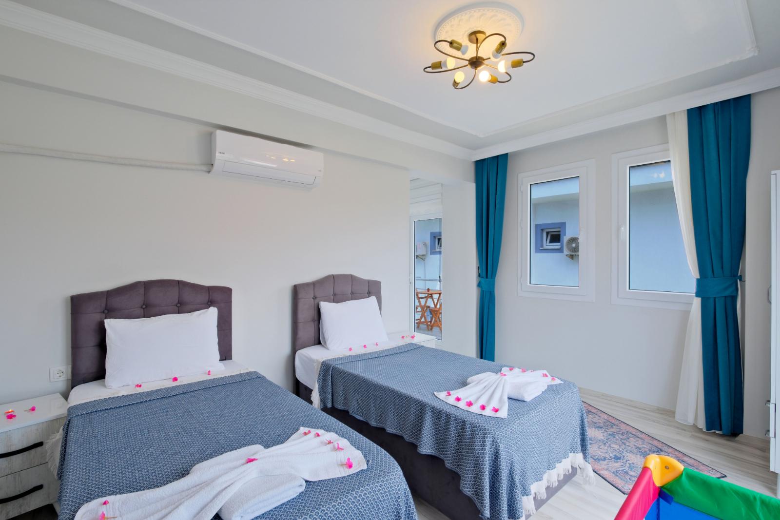 Yatak Odası 3: 2 adet tek kişilik yatak, klima, özel banyo ve WC