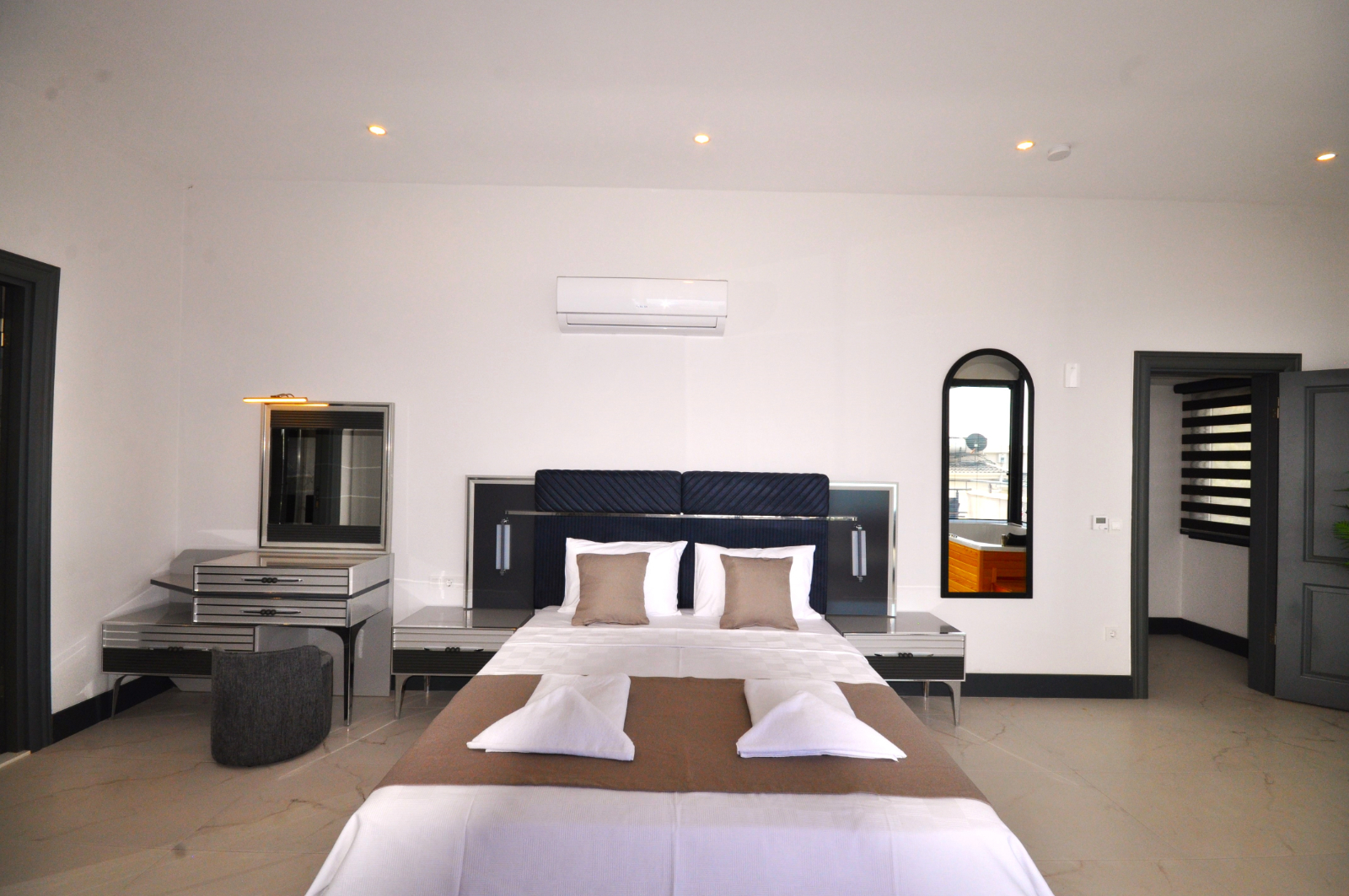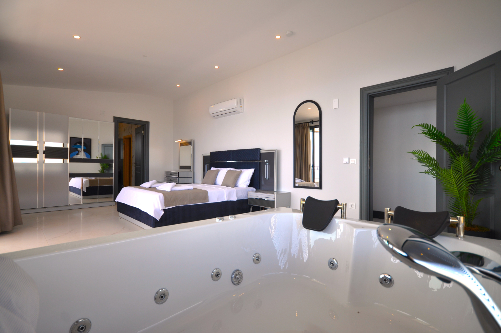 Birinci kattaki yatak odaları, çift kişilik ve tek kişilik yatak seçenekleri ile aile ve genç odaları olarak tasarlanmış, hepsi deniz manzaralı balkonlara sahip. Geniş elbise dolapları, komodin ve klima, rahat bir konaklama için tüm detayları içeriyor. İkinci kattaki ultra lüks süit ise jakuzi, sauna ve Türk hamamı ile tatilinizi SPA konforunda geçirmenizi sağlıyor. Balkonunda oturma alanı ile deniz manzarasının keyfini çıkarabilirsiniz.